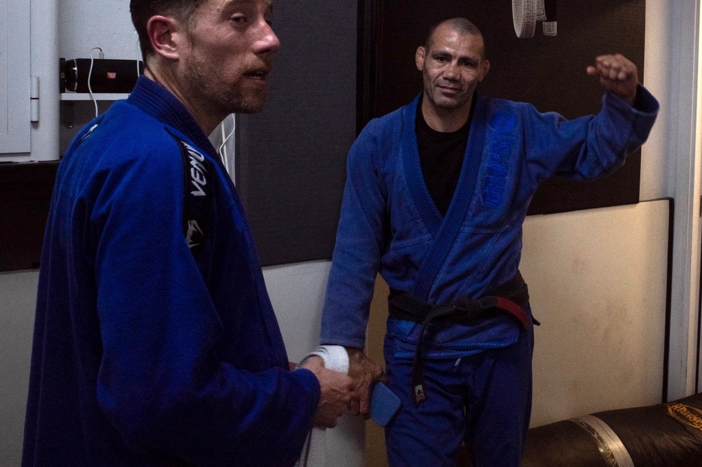Brottningen hade pågått i två timmar i en liten lokal med kvav luft.